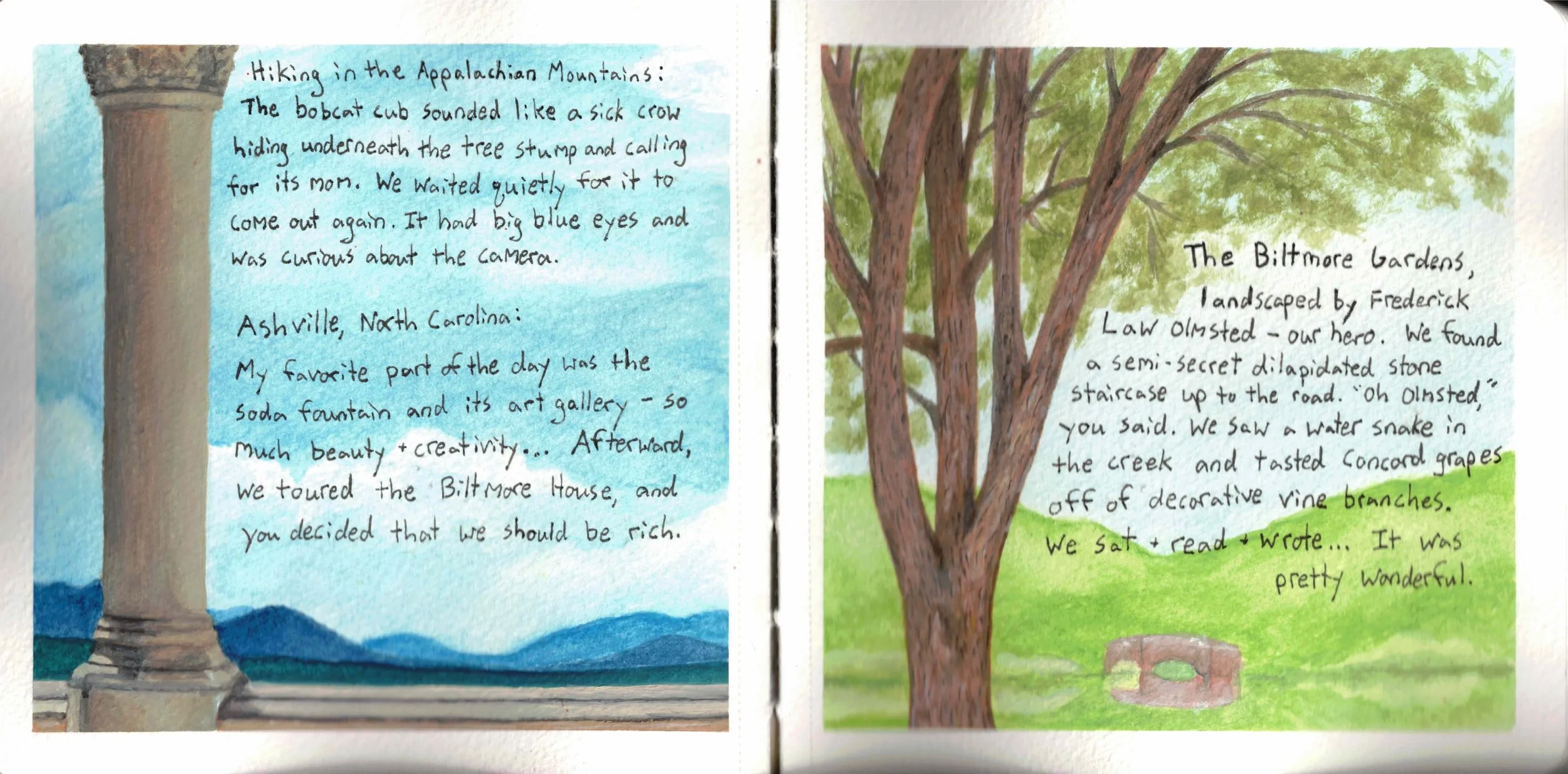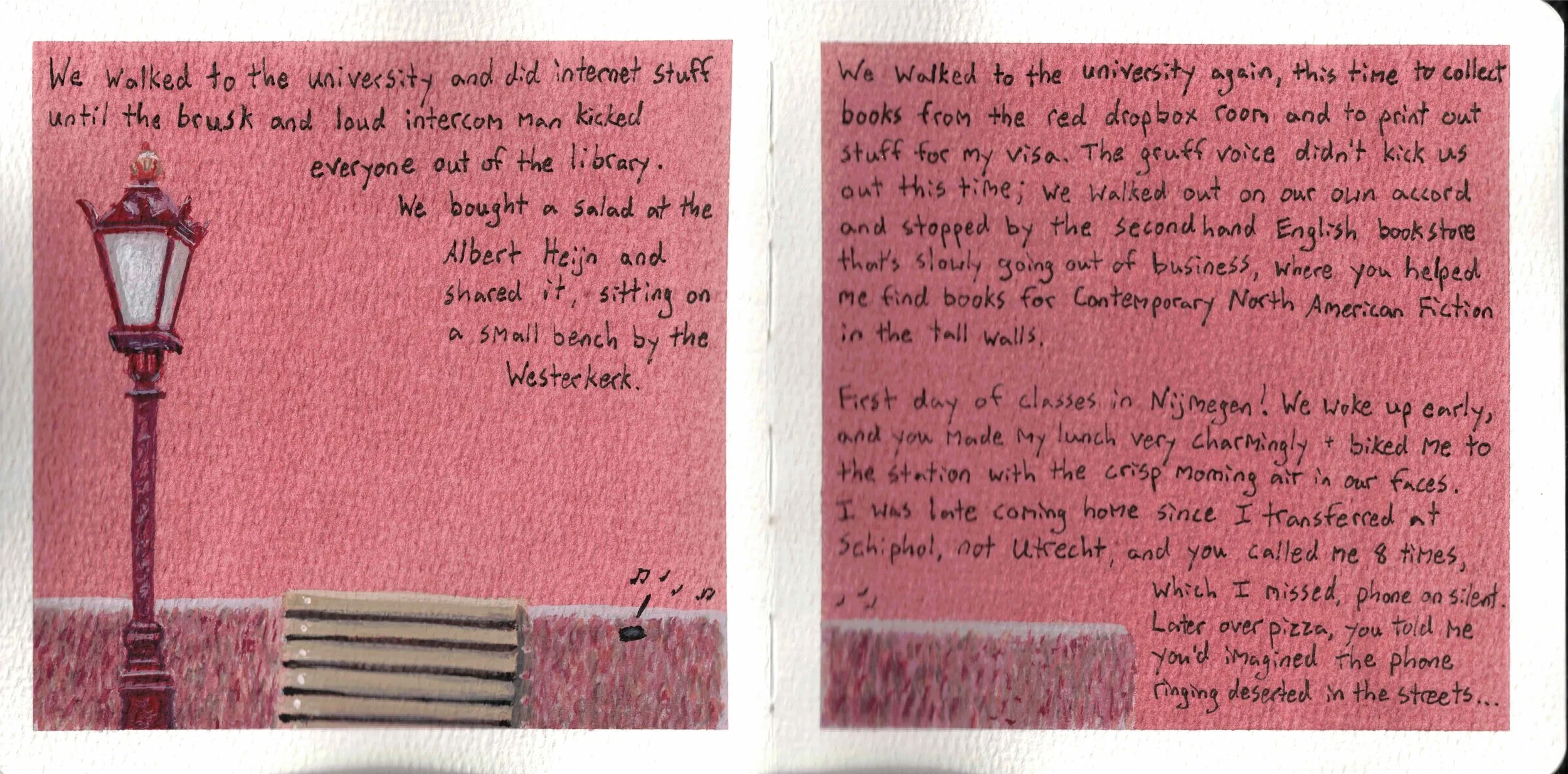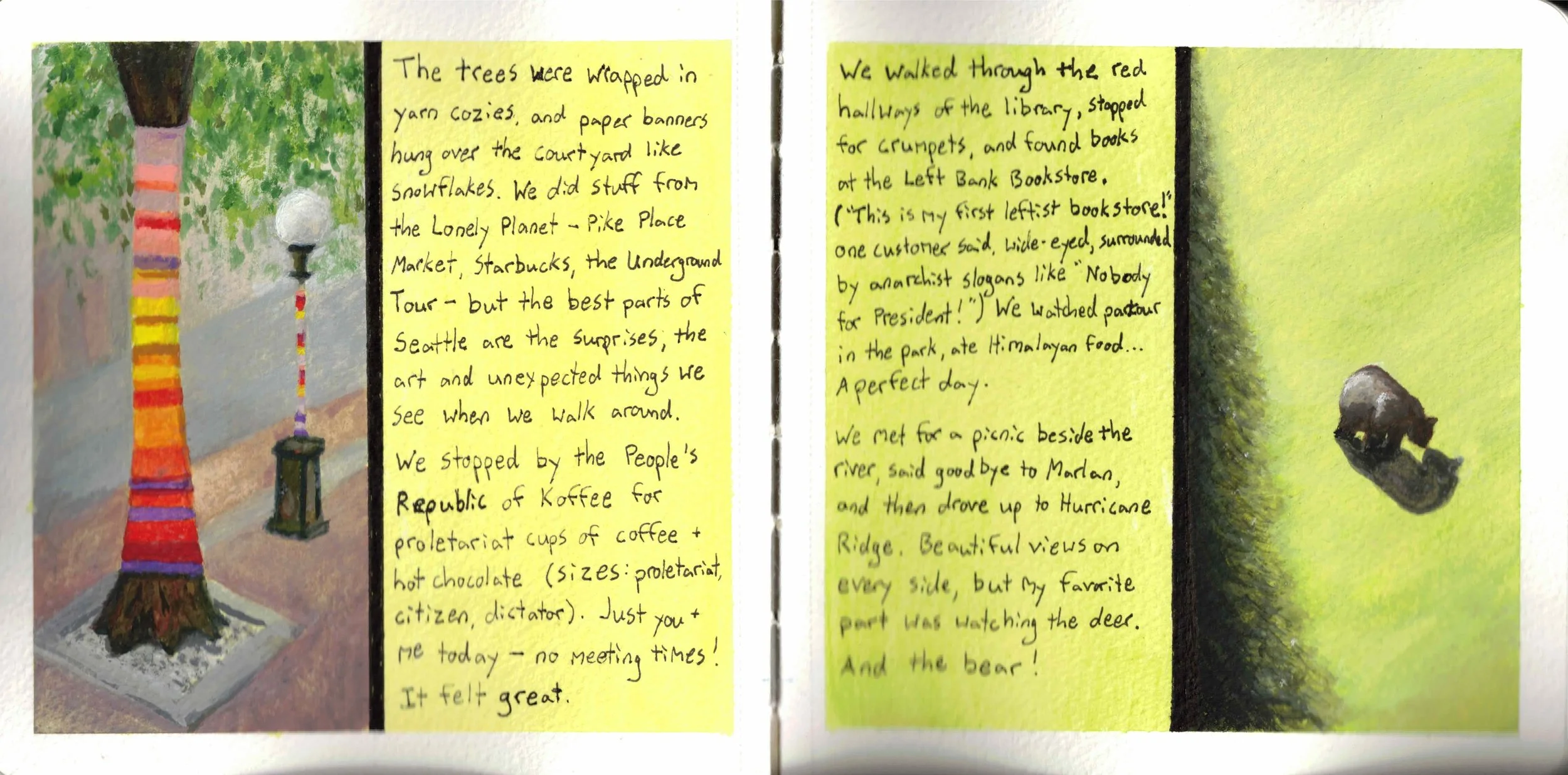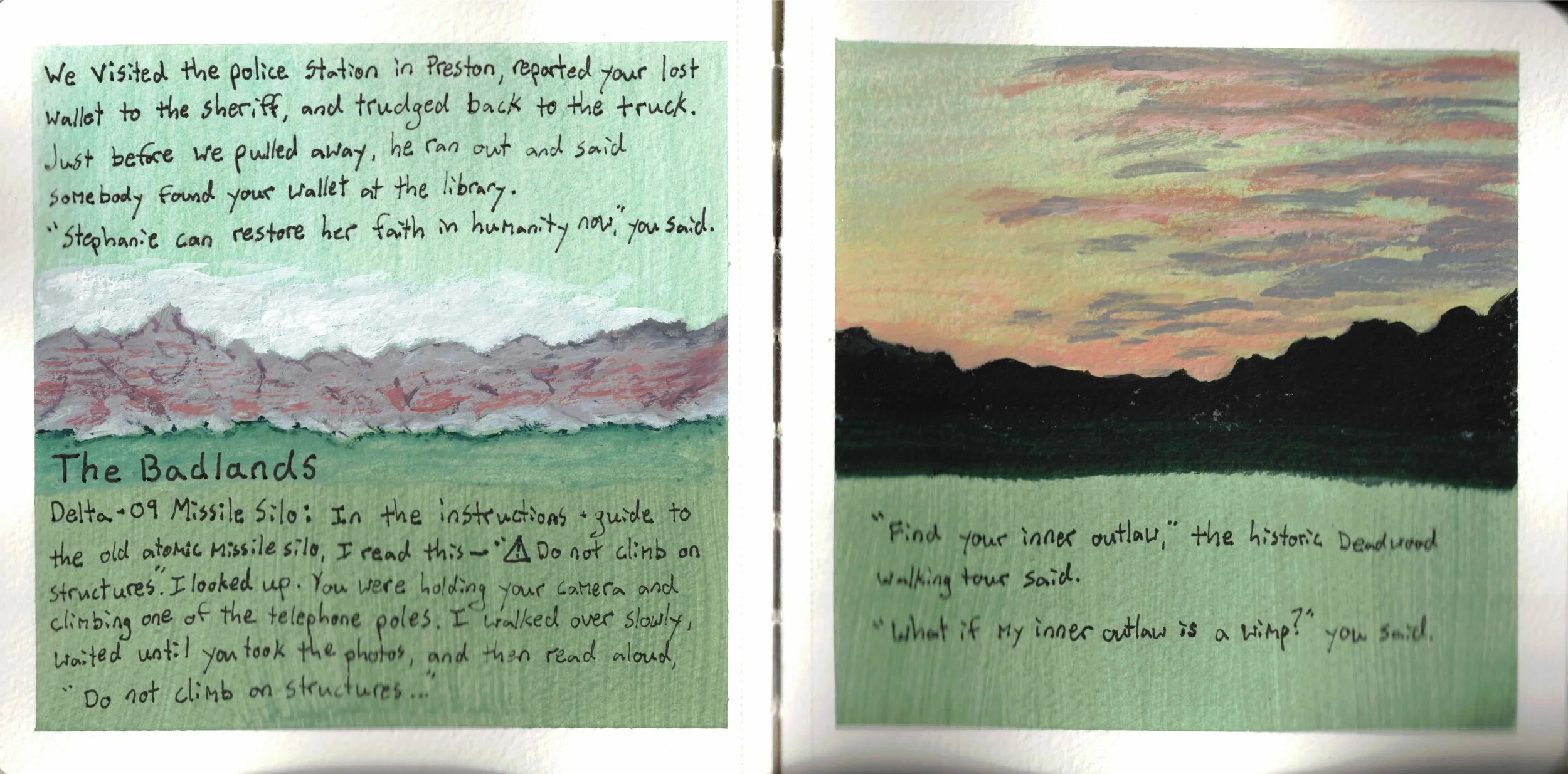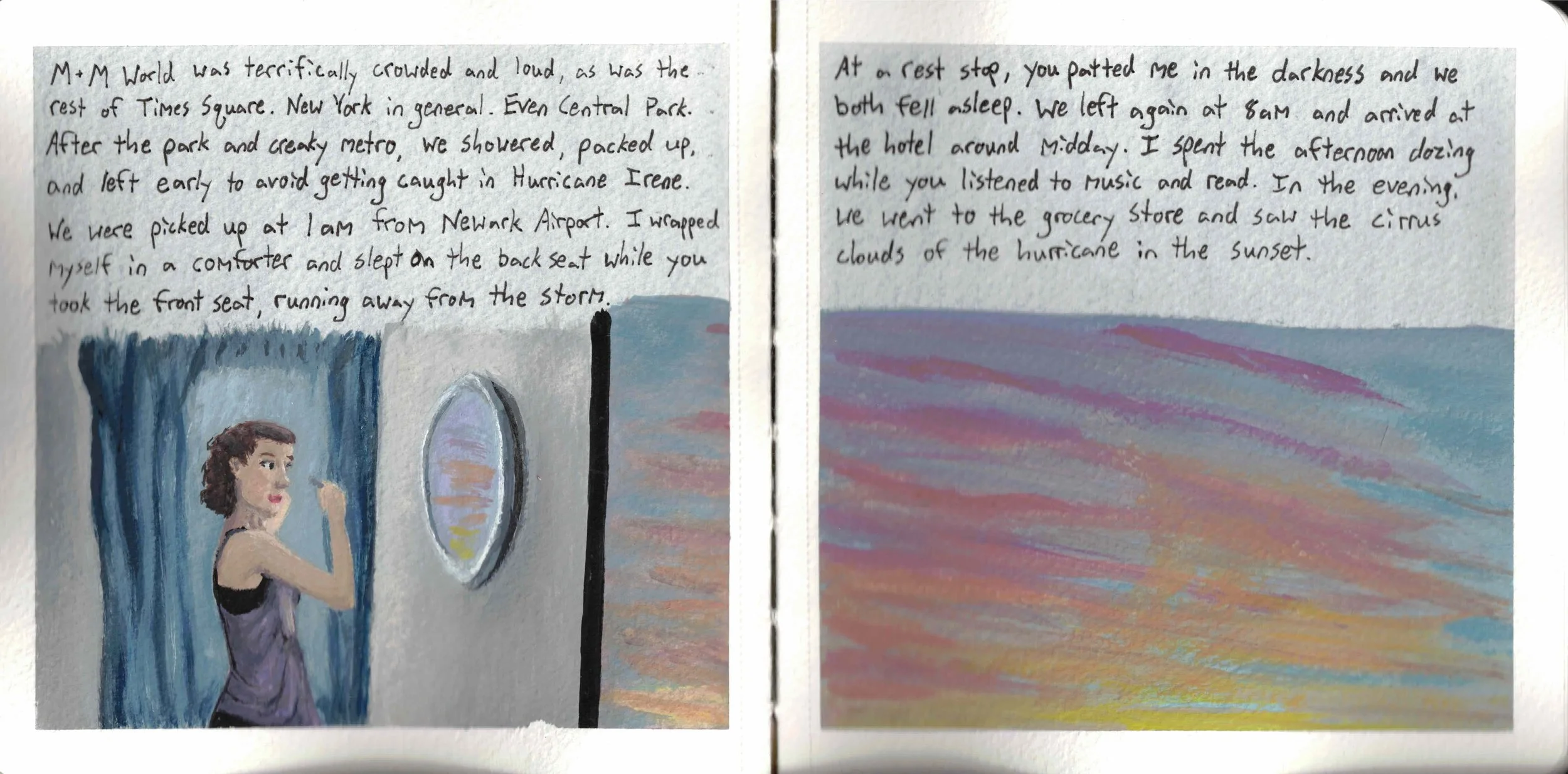 But with illustrated journals, the writing can stand alone. The art can add depth or atmosphere to what's written, but it can also be a separate narrative running parallel to the text. It's not caged by the writing; it's a partnership.