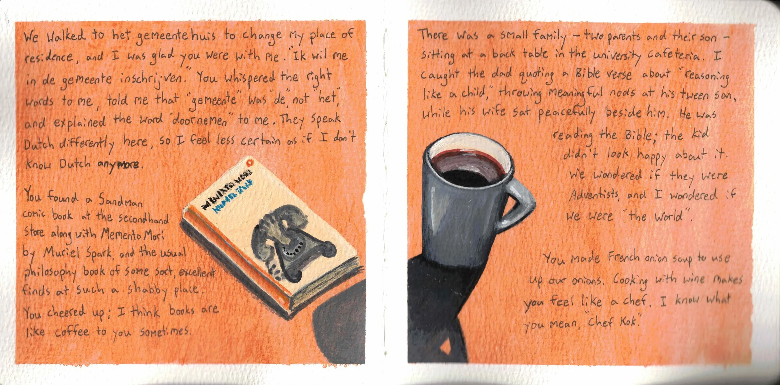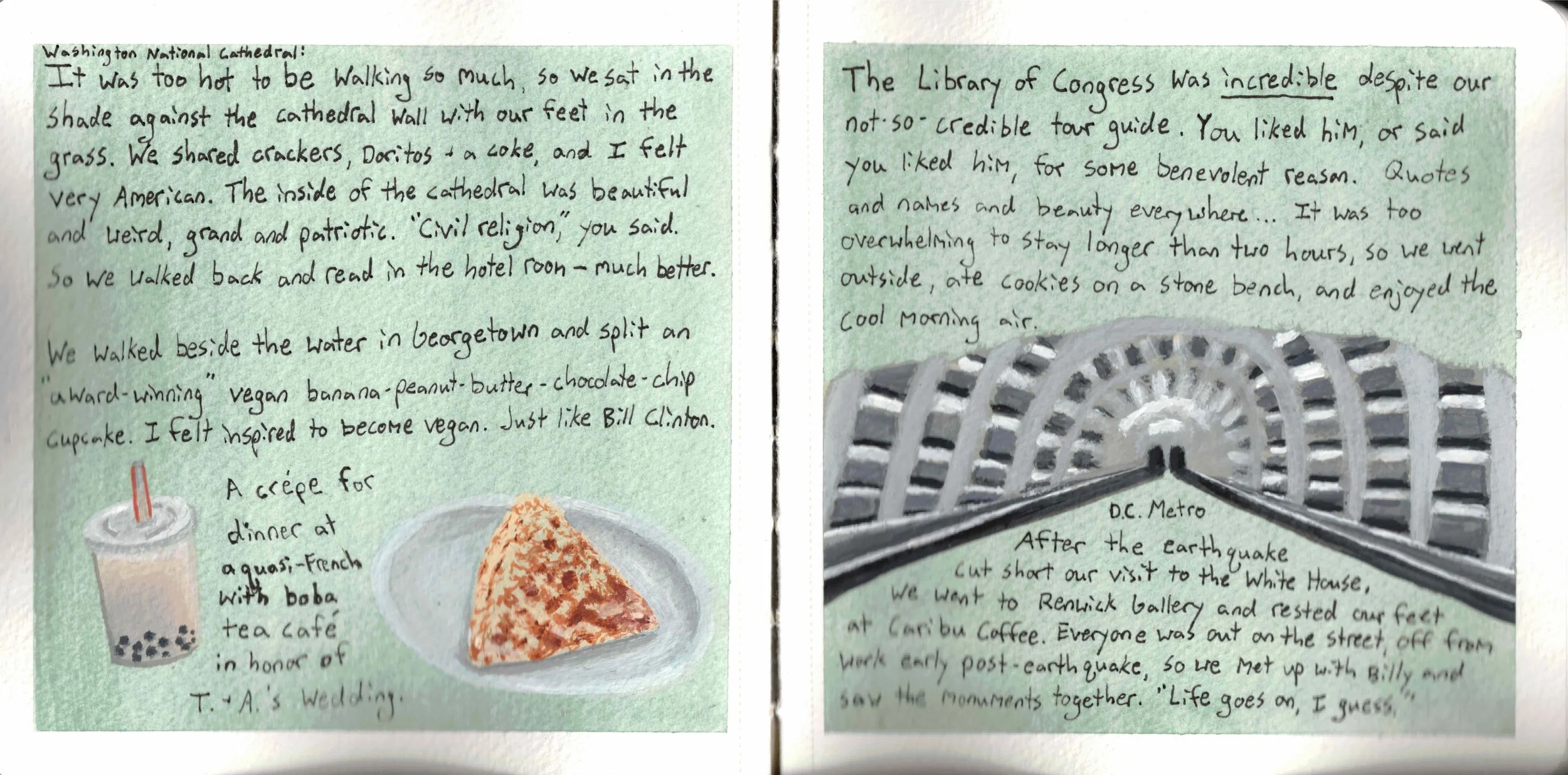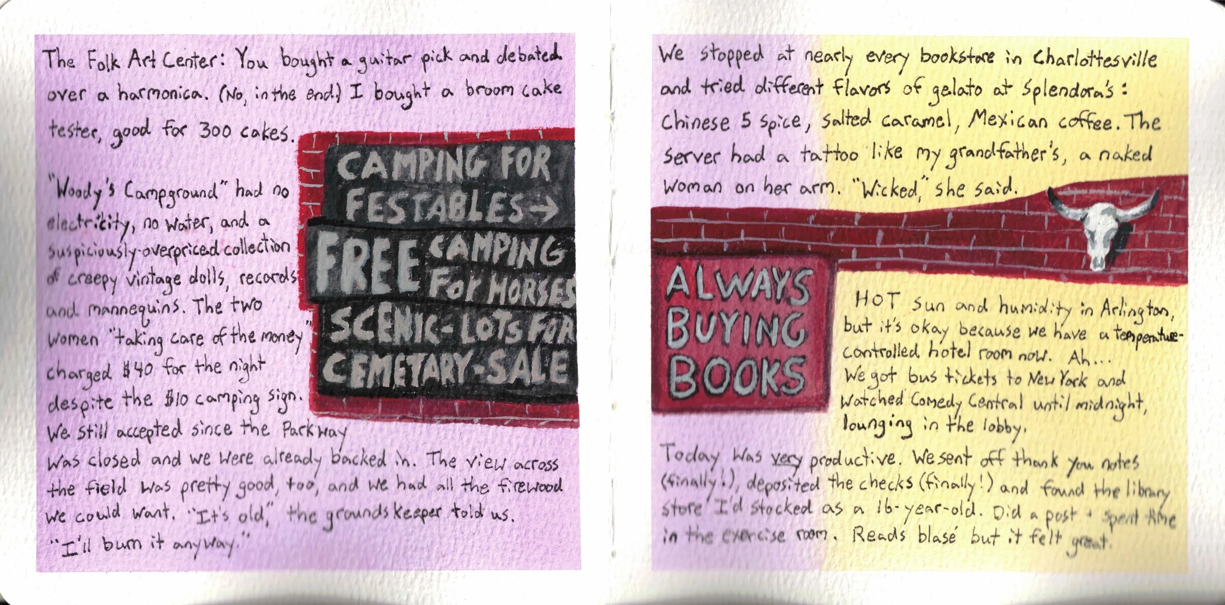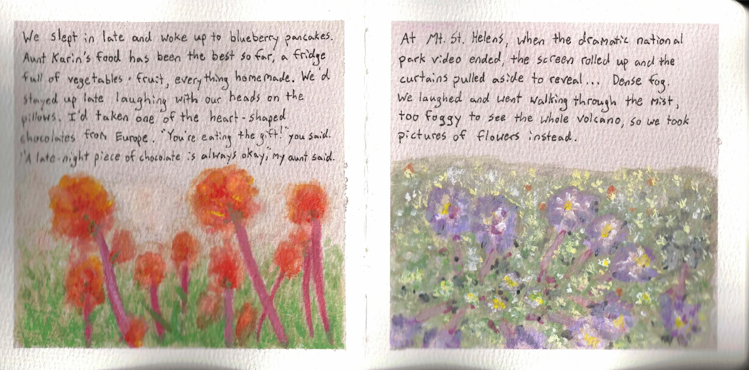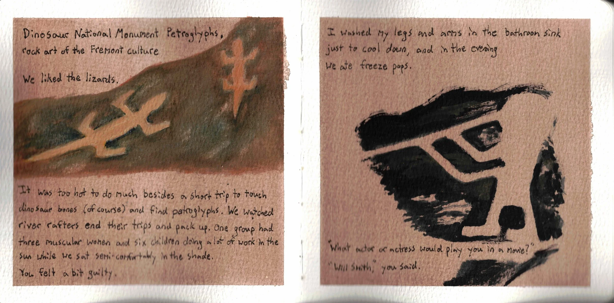 But with illustrated journals, the writing can stand alone. The art can add depth or atmosphere to what's written, but it can also be a separate narrative running parallel to the text. It's not caged by the writing; it's a partnership.