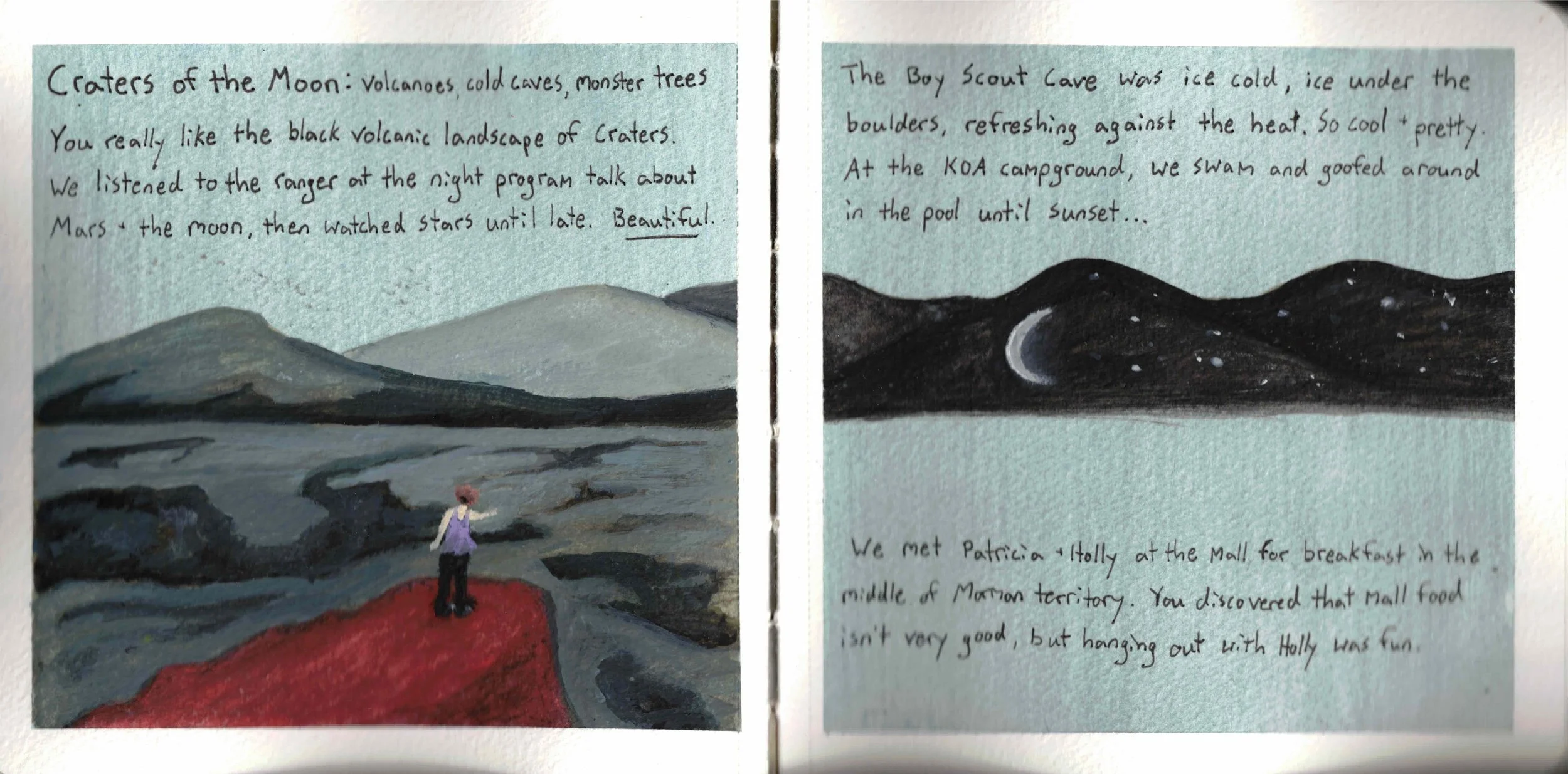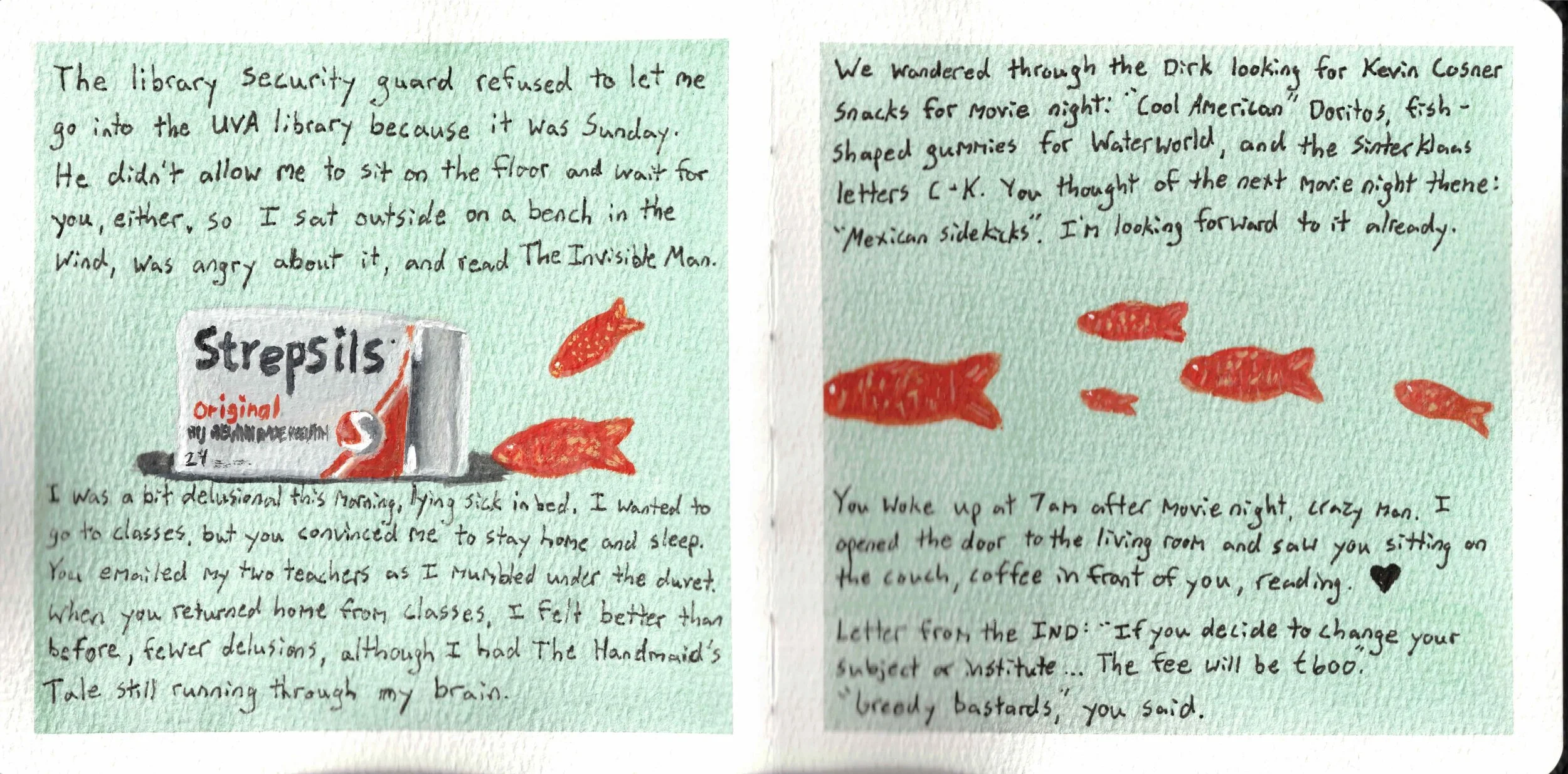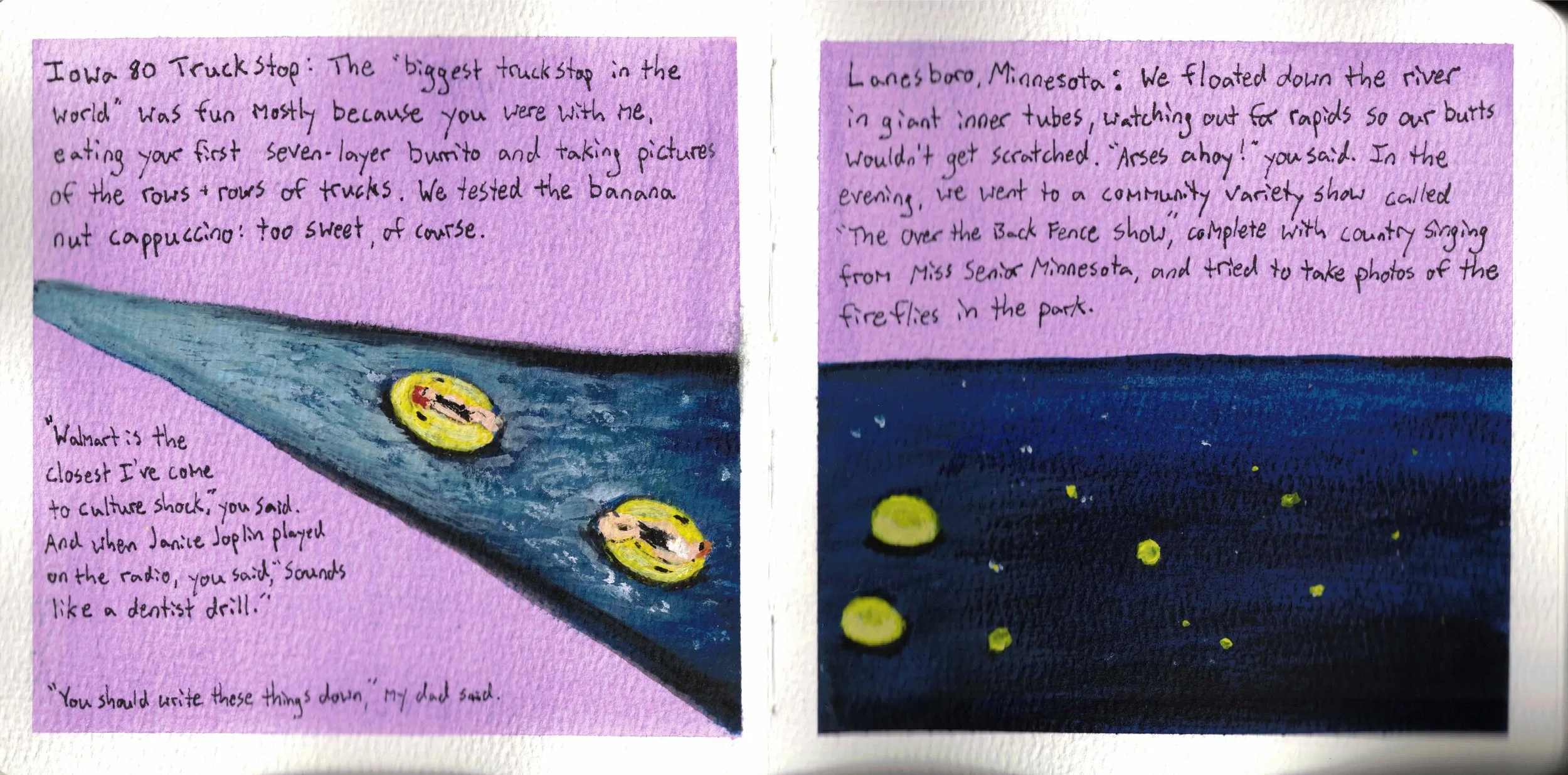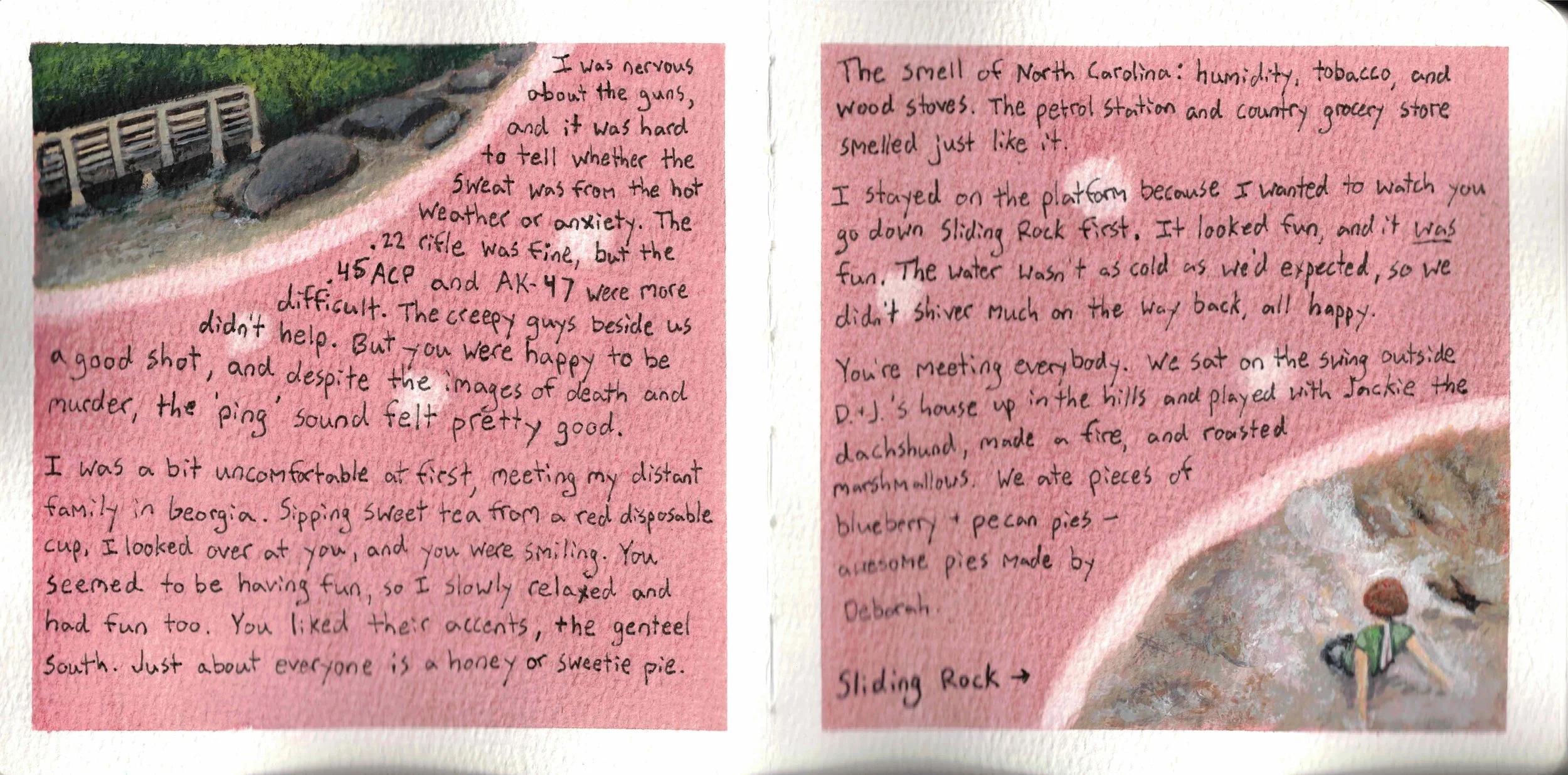 This illustrated journal is the closest I've come to having a safe space where I feel relaxed with experimental or bad art, since no matter what I create, it's special and worth keeping. After all, journals with mediocre art are more interesting than journals with no art at all.